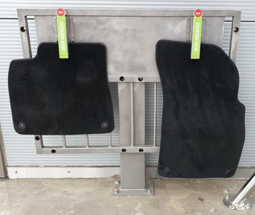 Čisticí automat MTM – MC Matty s možností suchého i mokrého čištění koberečků u bezkontaktních automyček. Je možné jej doplnit policí na pohodlné odkládání koberečků.